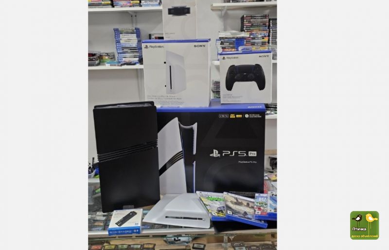 Оригинальная игровая консоль Sony PlayStation 5 Pro 2TB + 2 геймпада, 5 бесплатных игр, наушники, пульт ДУ и дополнительные аксессуары.